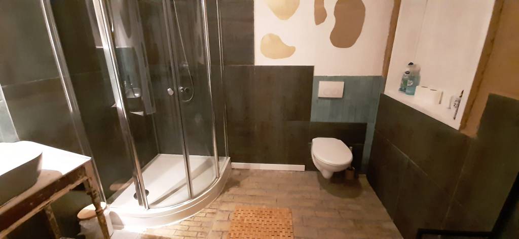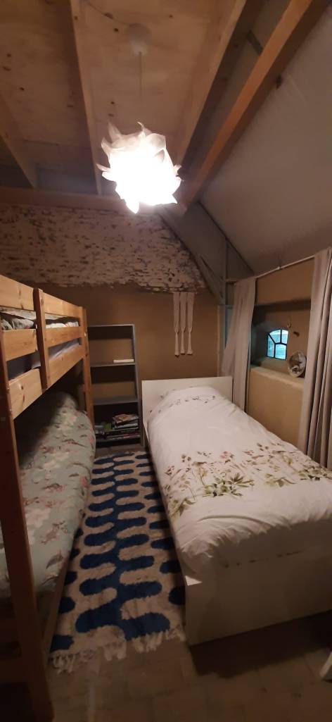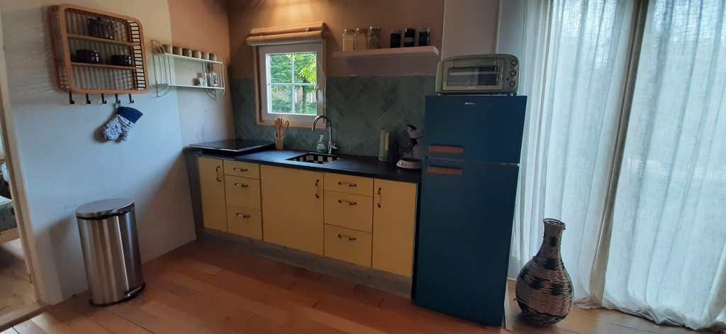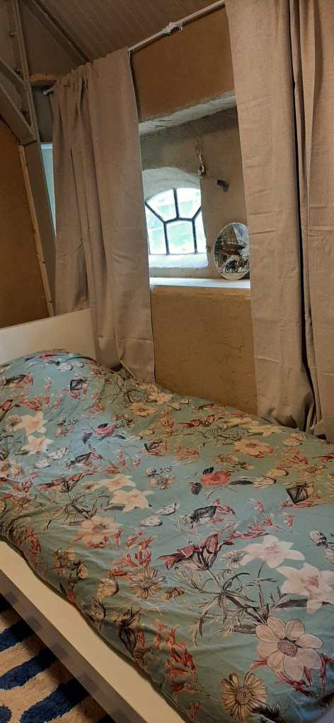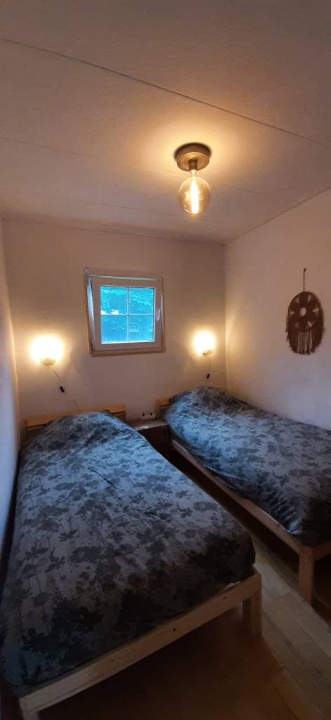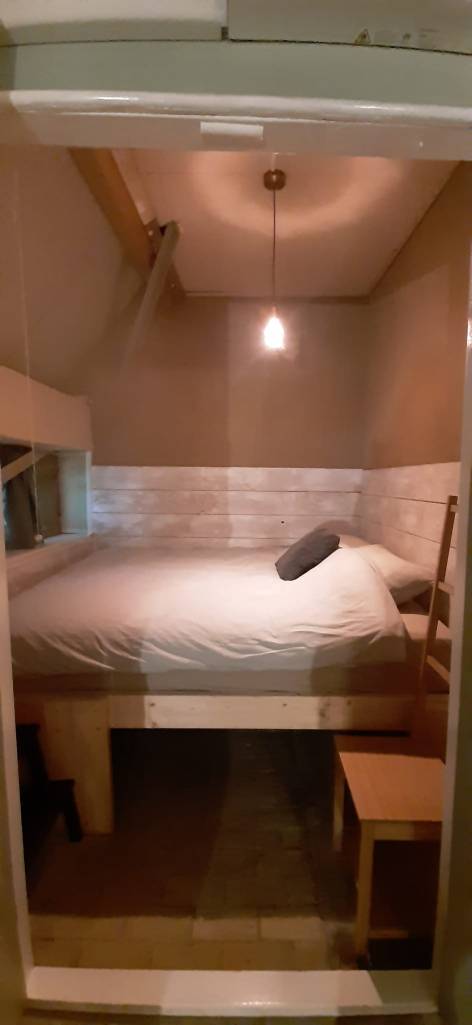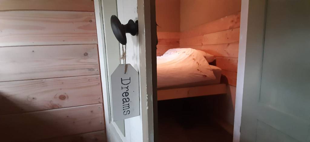 In de bedstee is een 2-persoonsbed en in de slaapkamer een 1-persoonsbed en een stapelbed. De bedden zijn opgemaakt. In de badkamer zit een douche en toilet. Je kunt gezellig aan het barretje hangen die grenst aan de keuken en er is een zithoek met tv.
