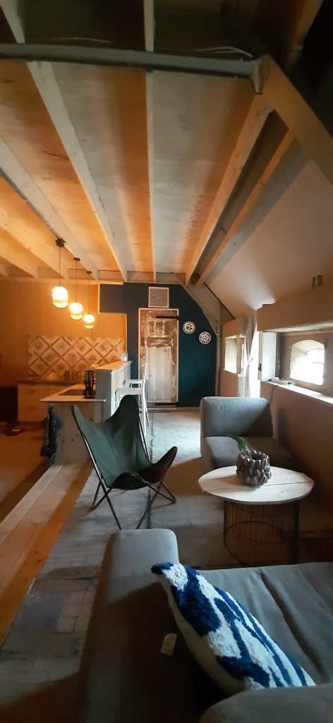 In de Grote stal van de kop hals romp boerderij Fookma Sathe zit een sfeervol authentiek appartement voor 5 personen, gebouwd in 2025.